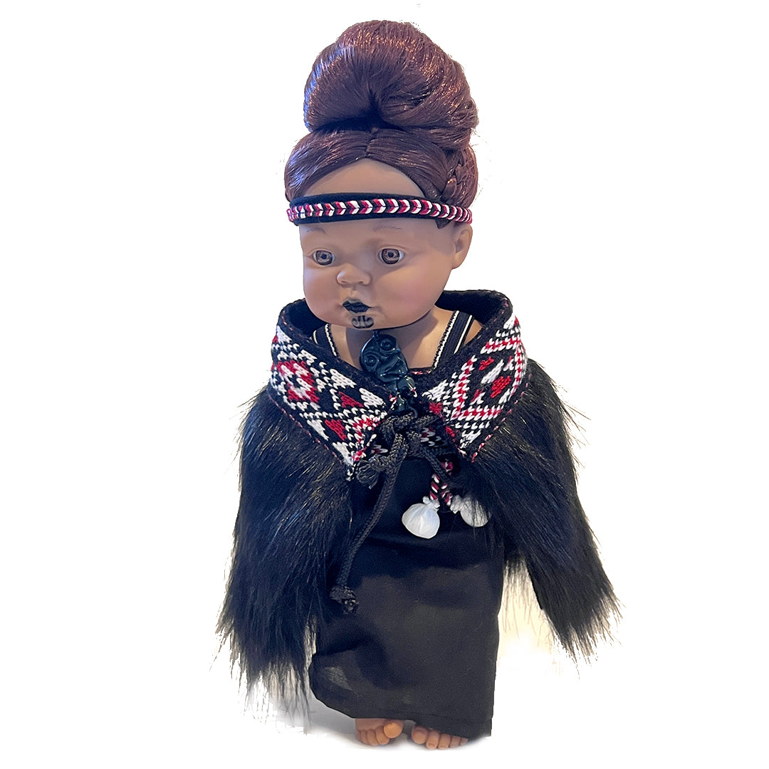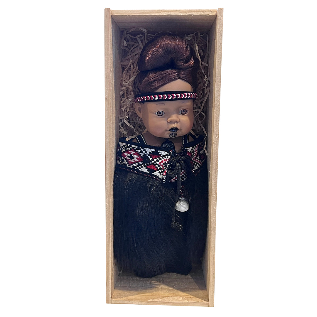 Her elegantly styled hair and traditional headband complete the look, infusing the doll with both grace and mana (presence). Whether displayed as a cultural keepsake or gifted to someone who appreciates meaningful art, this doll speaks to the essence of connection and storytelling.