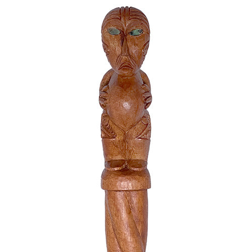 Step into a world of elegance and cultural heritage with our Twist Walking Stick with Tiki Top. This exceptional walking stick is a true masterpiece of rich Māori artistry. Handcrafted from wood, it features a beautifully carved Tiki figure at the top, symbolizing protection, strength, and ancestral connection.