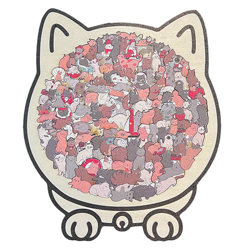 - Unique Cat Silhouette: Once completed, the puzzle forms a large cat‑shaped figure filled with dozens of whimsical cartoon cats, each with its own expression, pose, and quirky charm.